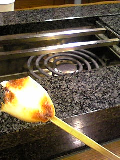 そこのお店では 自分で 笹かまを焼いて 食べるんですけど、