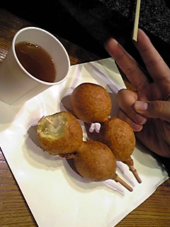 同じ店で、 ささかまを焼いてる途中に つまんだ ひょうたん焼き。 中に 笹かまが 入ってて すごくおいしい。 アメリカンドックみたいな 食感 ここでも 友達は お土産を大量購入。 おまけが つくほど 大量購入。 なんとも お得な 体型。